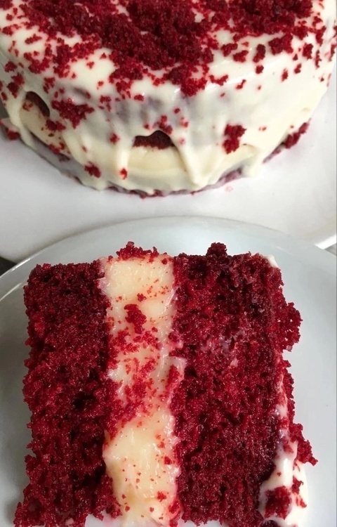 Ингредиенты на форму 16 см:⠀ Мука -120 гр.⠀ Сахар-130 гр.⠀ Растительное масло -150 гр.⠀ Яйца-2 шт.⠀ Кефир-150 гр.⠀ Какао-8 гр.⠀ Разрыхлитель-5 гр.⠀ Сода-0,5 ч.л.⠀ Соль-1 ч.л.⠀ Ванильный сахар -2 грамма ⠀ Гелевый красный краситель-2 ч.л.⠀ ⠀ 🧁Для крема🧁⠀ Сыр сливочный -500 гр.⠀ Сахарная пудра-150 гр.⠀ Масло сливочное-100 гр.⠀ ⠀ Все продукты должны быть комнатной температуры .⠀ Смешиваем муку+какао+разрыхлитель+сода+ванильный сахар.⠀ Сбиваем яйца с сахаром и солью около 3 минут.Добавляем растительное масло и перемешиваем.⠀ В кефир добавляем краситель и хорошо перемешиваем👌🏻⠀ В кефир с красителем добавляем готовые смеси из муки и яиц.Хорошо перемешиваем миксером.⠀ На дно формы я выкладываю бумагу для запекания..выпекаю по одному коржу при 180 градусов минут 25-30⠀ Всего получается 3 коржа.⠀ Когда коржи остынут,оборачиваем в пищевую плёнку каждый корж и в холодильник хотя бы на 2 часа.⠀ ⠀ 🎂Крем чиз🎂:⠀ Масло должно быть уже комнатной температуры,сыр только из холодильника.⠀ Смешиваю ма