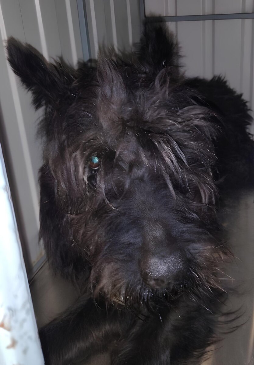 У ризеншнауцера Люка как раз год назад всё в жизни шло совсем не так - неравнодушные люди увидели на обочине около Н.Новгорода лежащую в сугробе большую чёрную собаку.