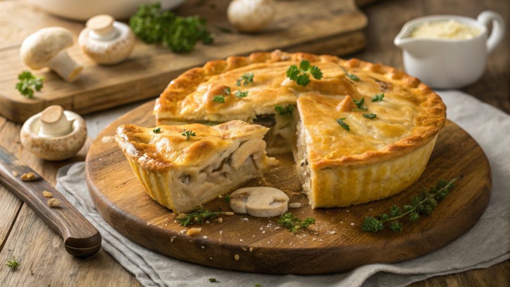 Пирог с курицей и грибами в сливочном соусе — это фантастическое блюдо, которое объединяет нежность куриного мяса и глубокий вкус грибов. Этот рецепт идеально подходит для семейного ужина или праздничного стола, ведь он сочетает в себе простоту приготовления и выдающийся вкус. Пирог может стать любимым способом использования остатков курицы и делать его можно в любое время года. Для большей насыщенности добавьте в начинку грибы различных видов, например, лисички или белые грибы.Пирог можно приготовить с готовым слоеным тестом для упрощения процесса.Храните остатки в холодильнике до 3-х дней или заморозьте для дальнейшего использования. Общее время готовки: 1 час 15 минут (подготовка — 30 минут, выпекание — 40 минут, ожидание — 5 минут). Данное блюдо рассчитано на 6 порций.