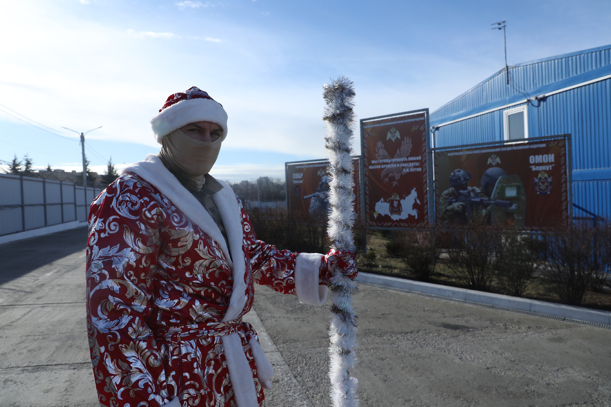 Боец ОМОН «Беркут» Росгвардии сменил служебный камуфляж на красный кафтан Деда Мороза и поздравил с Новым годом учеников подшефного класса, созданного в Донской школе имени В.П. Давиденко. Герой праздника приехал к ребятам на бронеавтомобиле «Тигр». Гость и сотрудники спецназа устроили для воспитанников настоящий праздник, поздравили каждого учащегося и подарили сладкие подарки. Ребята рассказали Деду Морозу о своих успехах в учебе в уходящем году, увлечениях и мечтах. В завершение встречи каждый из учеников ведомственного класса смог посидеть за рулем автомобиля специального назначения.