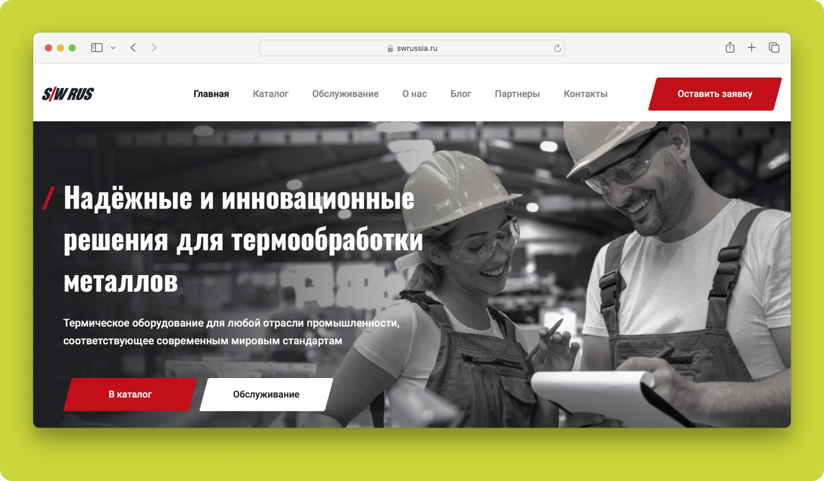 Например, на изначальном сайте не было возможности оставить заявку. Мы добавили такую опцию. Также клиент хотел сделать акцент на услугу по обслуживанию оборудования, а не только на продажу. Мы учли это.