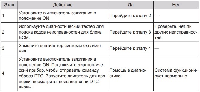 Определение кода неисправности: тип 5 неисправности сигнала вентилятора системы охлаждения двигателя. Условия появления кода неисправности: тип 5 неисправности сигнала обратной связи вентилятора.