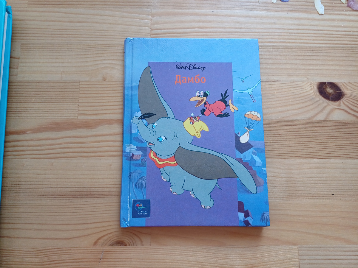 Книга Дамбо 2003г Эгмонт Дисней «Дамбо» — книга, изданная в 2003 году издательством «Эгмонт» в серии «Золотая классика Уолта Диснея». В издании представлен пересказ одного из первых мультфильмов студии Уолта Диснея. По сюжету аист принёс цирковой слонихе слонёнка с непомерно большими ушами. Взрослые слоны прозвали его Дамбо (на американском жаргоне — «глупый»). Слонёнку долго не везло, но в конце с помощью ушей он научился летать — уши заменяли ему крылья Дамбо. - Пер. с англ. М.: Эгмонт Россия Лтд., 2003. — 48 с. The Disney Enterprises, Inc. © Перевод на русский язык «Эгмонт Россия Лтд.», 2003 Редактор Ирина Копылова Вёрстка Ирины Маханёвой Издательство «Эгмонт Россия Лтд.». Подписано в печать 20.03.2003. Бумага Enso Classik. Печать офсетная. Тираж 30 000 экз. Для младшего школьного возраста