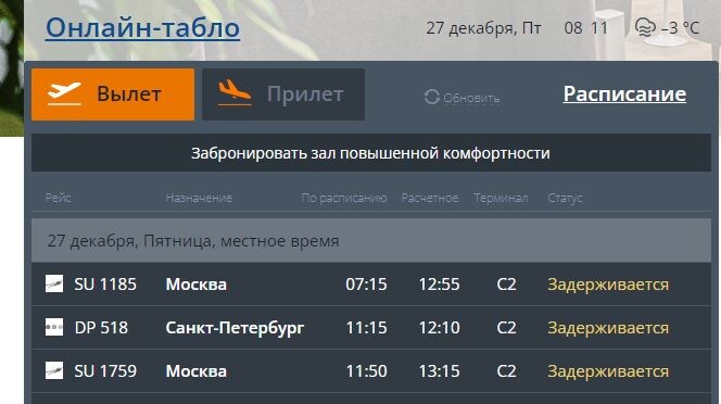 Три авиарейса задержали в Волгограде после ограничений в аэропорту