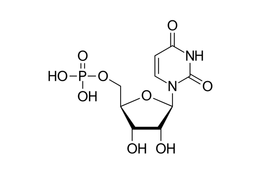 Уридинмонофосфат (УМФ) — один из четырех пиримидиновых нуклеозидов, которые играют важную роль в РНК. РНК считается молекулой-мессенджером, которая переносит чертеж ДНК в рибосомы, отвечающие за синтез белка. Наличие уридина является основным отличием РНК от ДНК. В процессе трансляции основание тиминового нуклеозида, обнаруженное в ДНК, превращается в основание уридинового нуклеозида в РНК. Без уридина ДНК не смогла бы активировать механизм действия для синтеза белка. Помимо того, что уридин является строительным блоком РНК, он также помогает в развитии нейротрансмиттеров и создании новых синапсов.