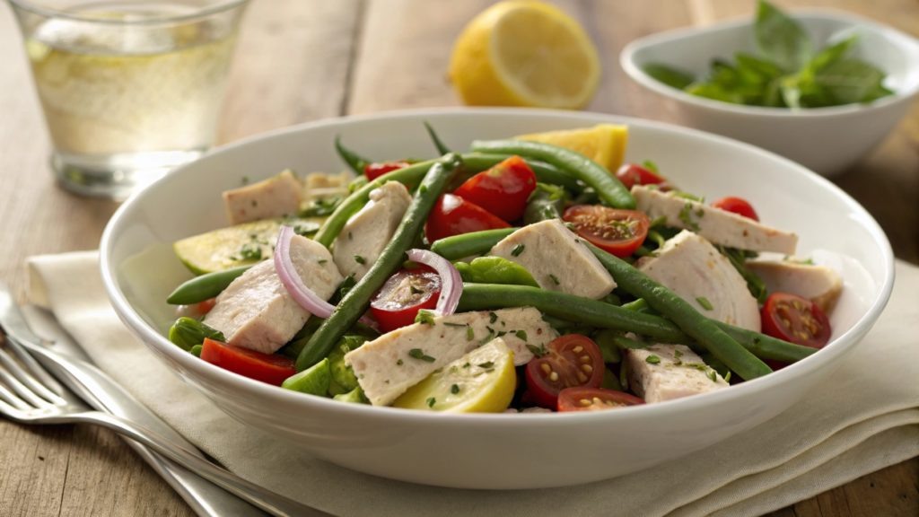 Салат с индейкой, авокадо и зелёной фасолью