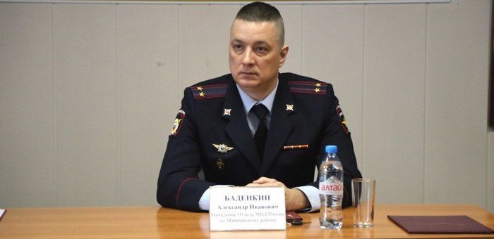 Новым начальником отдела полиции по Майминскому району стал подполковник Александр Баденкин. Личному составу его представил министр внутренних дел по Республике Алтай Дмитрий Трощилов. Он подчеркнул, что Александр Баденкин давно служит в органах внутренних дел и имеет богатый опыт работы, в том числе на руководящих должностях. Как сообщили в МВД по РА, Александр Баденкин начинал работать с должности оперуполномоченного отделения уголовного розыска отдела милиции управления внутренних дел по городу Белгороду. Вся его служебная деятельность с 2006 года была связана с оперативной работой. Последние полгода он был заместителем начальника ОМВД России по Майминскому району. Министр поручил новому руководителю в кратчайшие сроки детально изучить проблемные направления и принять соответствующие меры реагирования.