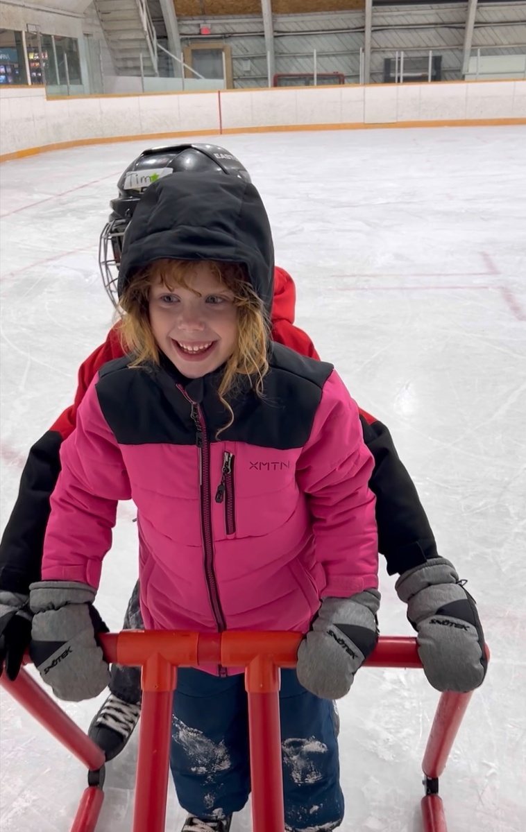 Впервые поставить Элю на коньки мы попробовали в три года. Она ложилась на лед и плакала. Пробовали раза два-три за зиму. Поняли, что этот процесс не приносит ничего хорошего ребенку, кроме стресса. И оставили эту затею. Сейчас Эле пять с половиной лет У нее аутизм Эля довольно высокофункциональна. У нее неплохая коммуникация (со знакомыми и не страшными для нее людьми). Но диагноз дает о себе знать. И многое Эле дается сложнее, чем другим детям. Для приобретения очередного навыка, часто нужно сначало одолеть страх. А страх перед новым и неизвестным присутствует практически всегда. Так, а что же с коньками? К конькам мы вернулись через год. Когда Эле было четыре года. На этот раз купили воротики - опору и ездили кататься, когда на льду было тихи и никого не было. В тот год тоже не сработало. Эля даже перестала выходить из дома, когда мы начинали складывать коньки в сумку. Этот год - третья зима, как мы впервые познакомили Элю с коньками. Без результативно. Но мы ж неугомонные.