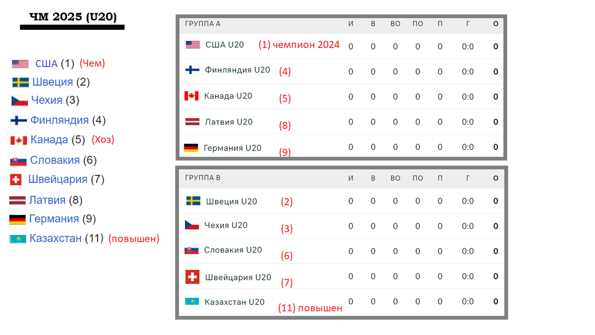 Хоккей. МЧМ 2025 (U20). 1 день. Результаты. Таблица. Расписание. Бомбардиры.
