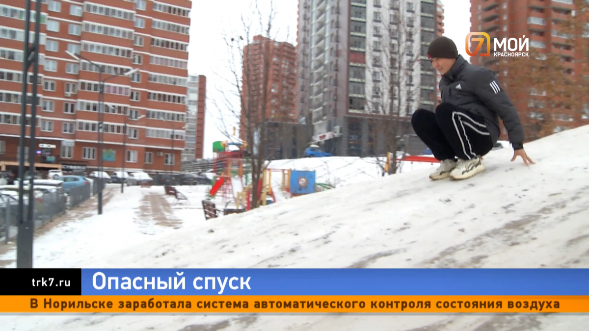 Но вот как раз дети, похоже, единственные, кто рады этому склону — из него вышла отличная горка. Только и нужны ледянки, плюшки и в путь! Но как оказалось, очень опасный путь.