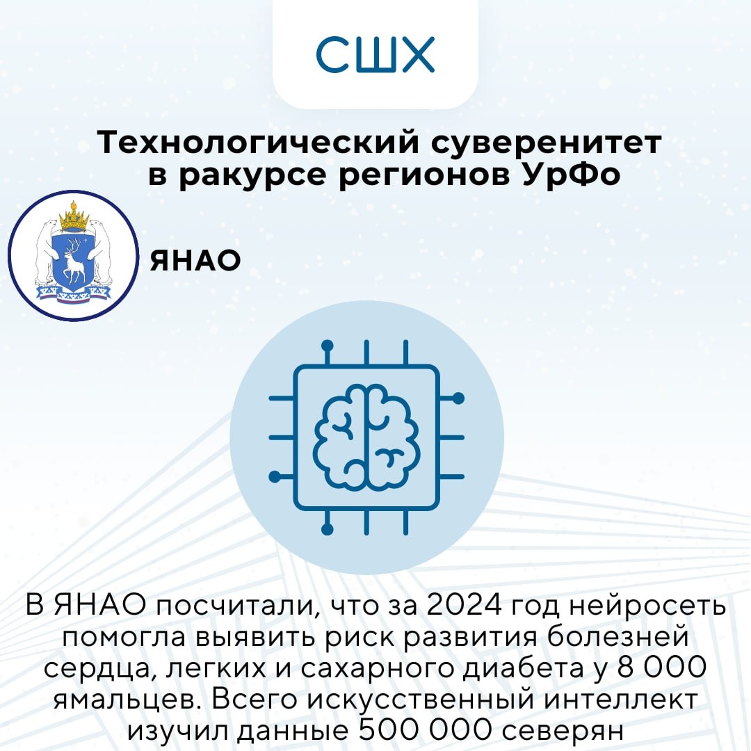 В Ямало-Ненецком автономном округе посчитали, что за 2024 год нейросеть помогла выявить риск развития болезней сердца, легких и сахарного диабета у 8 000 ямальцев. Всего искусственный интеллект изучил данные 500 000 северянВ Курганской области «Росатом» провел опытно-промышленный запуск экотехнопарка «Щучье». Сам промышленно-экологический парк создан на базе бывшего завода по уничтожению химического оружия. Предполагается, что «Щучье» станет центром России по обработке, утилизации и обезвреживанию отходов. Объем вложенных инвестиций составил более 12 млрд рублей.. В Курганской области «Росатом» провел опытно-промышленный запуск экотехнопарка «Щучье». Сам промышленно-экологический парк создан на базе бывшего завода по уничтожению химического оружия. Предполагается, что «Щучье» станет центром России по обработке, утилизации и обезвреживанию отходов. Объем вложенных инвестиций составил более 12 млрд рублей. В Свердловской области завершены пуско-наладочные и монтажные работы на новом мусо