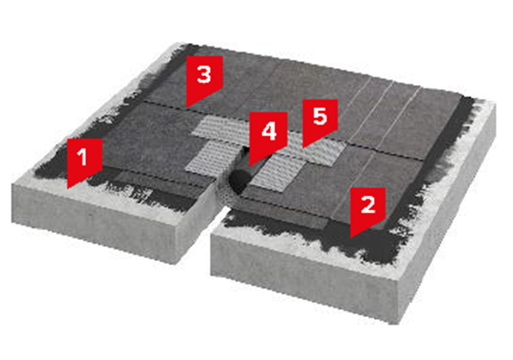 Гернитовый шнур ТехноНИКОЛЬ Фундамент изготавливается из синтетического каучука с добавлением пластификаторов, что делает его стойким к воздействию пламени во время наплавления и позволяет сохранить заданную форму компенсаторной петли из материала ТЕХНОНИКОЛЬ ФЛЕКС при устройстве гидроизоляционной мембраны в зоне деформационных швов подземных и заглубленных конструкций, зданий и сооружений различного назначения и класса ответственности, тоннелей (строящихся открытым способом), стилобатах, парковках, на крышах зданий и т.д. А также для заполнения швов и стыков с последующей заливкой горячих битумно-полимерных герметиков. Гернитовый шнур ТехноНИКОЛЬ Фундамент: Доступен в типоразмерах 20/8; 30/10; 40/20, где числовые значения – внешний и внутренний диаметры шнура. Подбирают шнур по размеру так, чтобы его внешний диаметр на ¼÷½ превышал ширину шва. Например, для заделки шва шириной 15 мм, подойдет шнур размером 20/8. 1. Бетонная подготовка 2. Праймер 3. Гидроизоляционная мембрана 4. Гернит