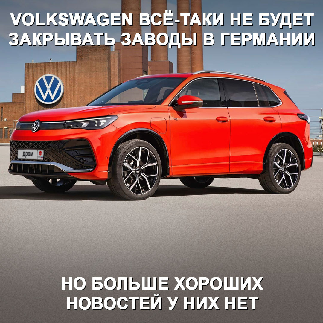 По крайней мере, пока. И не всё так гладко 😯 Напомним, немецкий концерн столкнулся с огромными финансовыми проблемами. Из-за этого в Volkswagen планировали сократить большое количество сотрудников и закрыть несколько предприятий в Германии — впервые за всю историю компании. Против этого выступил профсоюз, который грозил масштабными протестными акциями. В результате переговоров стороны пришли к компромиссу, заводы останутся, но: — Компания срежет бонусы и премии примерно на 10%. — Годовой объём производства VW в Германии будет сокращён примерно до 730 000 автомобилей в год, хотя ранее он достигал почти 1 900 000 машин. Для этого будет серьёзно пересмотрена загрузка местных заводов. — Сборка модели Golf переедет в Мексику, в Германии наладят производство электрической версии. — До 2030 года VW сократит штат примерно на 35 000 человек в основном за счёт раннего выхода сотрудников на пенсию. Различные меры должны помочь концерну экономить по несколько миллиардов евро ежегодно до 2031 года