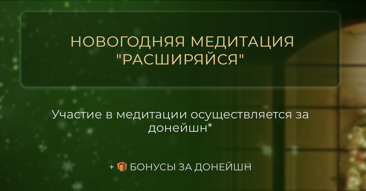 🎄✨ НОВОГОДНЯЯ МЕДИТАЦИЯ "РАСШИРЯЙСЯ" ✨🎄 Приглашаем вас на особую медитацию, которая поможет завершить старый год и открыть пространство для новых возможностей. 🌟 Участие в медитации осуществляется за донейшн.