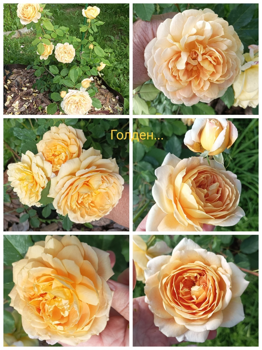 Доброго всем дня! Заканчиваются праздники, и весна всё ближе, розы спят под снегом, на севере Подмосковья его достаточно, даже когда в городе плюс, снег с укрытий не растаивает. Татьяна, в вашу прекрасную рубрику «Роза без глянца» мне захотелось добавить ещё одну розу. Англичанка, известная всем, у меня она живёт два сезона — Голден Серебрейшен. Во-первых, цвет, он насыщенный, не выгорает, немного меняется с возрастом цветка. Во-вторых, красивая форма лепестков и их укладка, она — произведение розового искусства. Цветок живёт, пока роза молодая, примерно пять дней. Очень достойная роза. Сажая её, нужно оставлять место для её роста в ширину. Высота в этом сезоне была 1,5 метра. Пока практически не болела и на дождь реагировала хорошо.