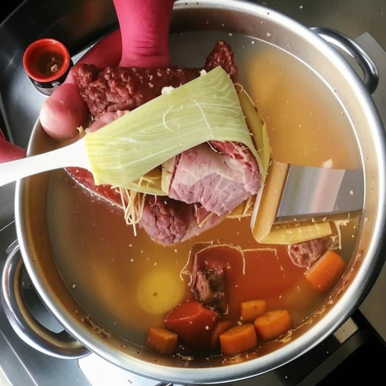 1. Подготовка бульона: Если у вас нет готового бульона, приготовьте его заранее. Для этого сварите мясо (курицу, говядину или свинину) в воде с добавлением лаврового листа, соли и перца. Варить нужно около часа, затем процедить бульон и удалить кости.