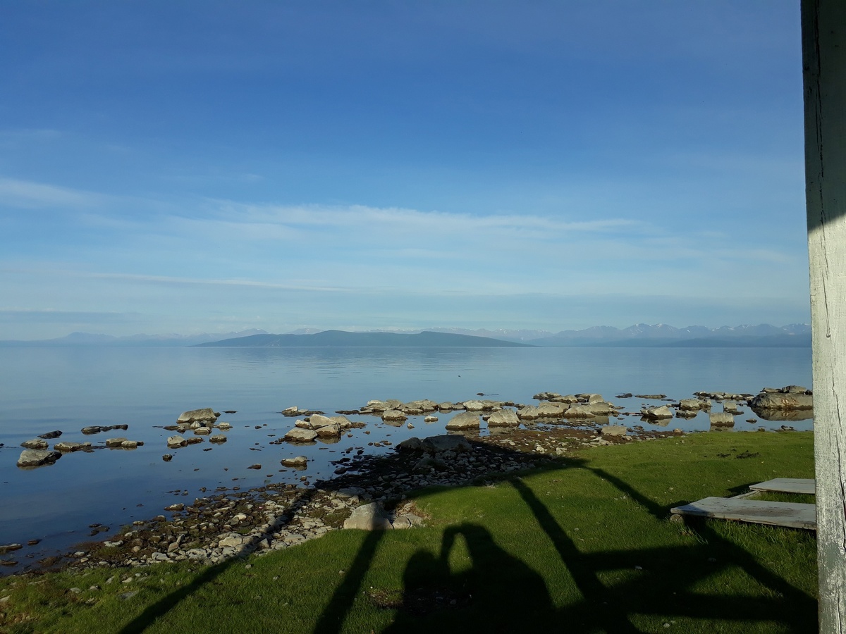 Только представьте: тёмно-синее небо, плавно переходящее в желтоватый и розовый остаток солнечной подсветки и ниже отражающееся обратным порядком в окаменевшей глади озера. Сбоку – ломанная линия хребтов, возрастающая вправо и заканчивающаяся вершиной Центральных Саян - Мунку-Сардык. Низко над водой только вчера родившийся месяц и яркая Венера. И запах! В лицо – бризовый чистейшей свежести, в спину – остывающий травяно-цветущий – степи.