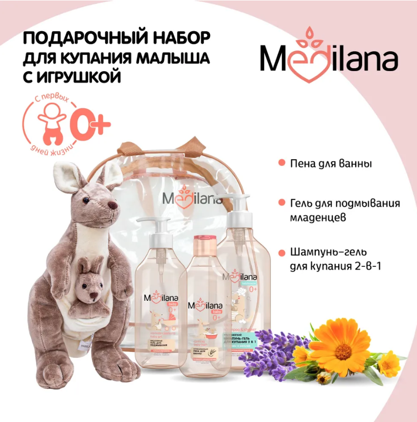 Классные средства для ухода за малышом и мягкая игрушка в симпатичной косметичке. Угадайте что это? Конечно, подарочный набор Medilana! 🟢 Вариант 1 • Шампунь-гель 2 в 1 • Мицеллярный гель для подмывания младенцев • Успокаивающая пена для ванны с эфирным маслом лаванды • Игрушка-кенгуру 🟢 Вариант 2 • Липидное молочко для тела • Шампунь от "молочных корочек" • Игрушка-кенгуру 🟢 Вариант 3 • Средство для купания • Увлажняющий крем-эмолент • Игрушка-кенгуру Выбирайте комплект, который Вам наиболее актуален!🩷💛💚