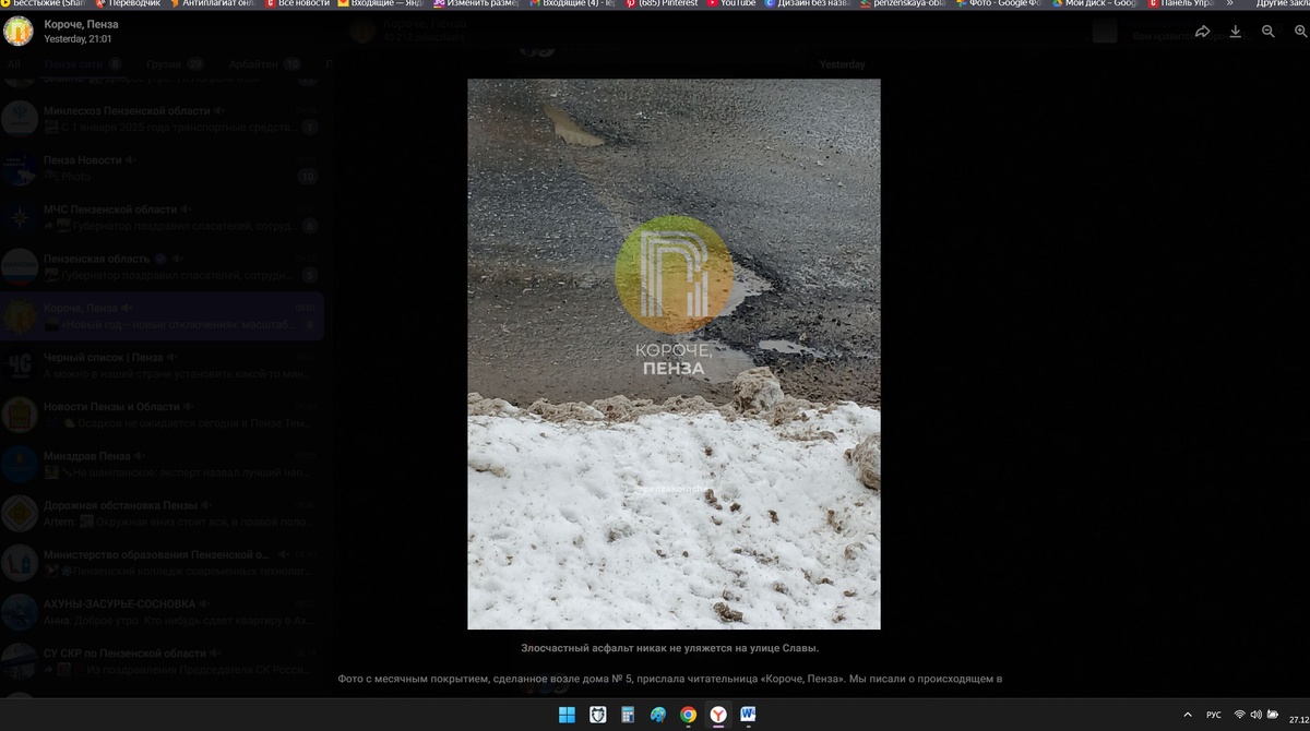 Жители Пензы возмущены состоянием улицы Славы, где никак не уляжется новый асфальт. На дороге вновь была замечена яма. Одна из пензячек опубликовала в сети фото, сделанное у дома №5. На нем видно большую яму, наполненную водой. По соседству появились еще несколько маленьких провалов. «Ничего не изменилось. Новенький асфальт, как и раньше, поплыл», – указано под снимком. Напомним, в октябре пензенцы жаловались на вечно перекопанный асфальт по улице Славы. Тогда на участке меняли трубы, для этого вводили ограничение для транспорта. К ноябрю коммунальщики завершили свою работу, однако дорога спустя месяц «поплыла».