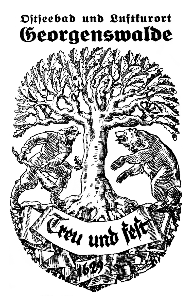 Удивительно, но у небольшой деревни даже был герб, сюжет которого проливает свет на причину такой щедрости герцога и объясняет отчего он разрешил дать поселению своё имя. Согласно легенде, однажды заядлый охотник Георг Вильгельм встретился в местном лесу с медведем и был бы растерзан хищником, если бы не отвага Каспара. Сцена сражения герцога с медведем легла в основу геральдики, а слоган «Верность и твёрдость» - явное описание качеств Кавеманна, которые разглядел в нём в тот злополучный день Георг Вильгельм.