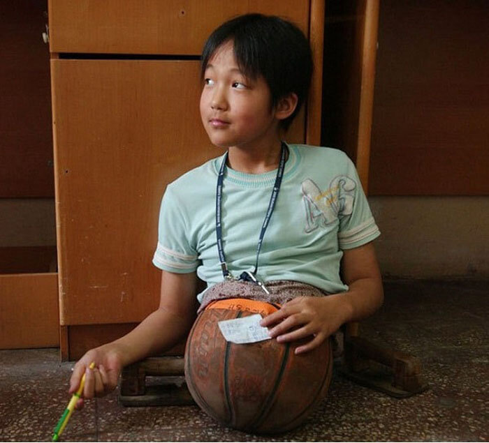 Семья Хонгуан жила бедно и не могла оплатить дорогостоящую реабилитацию, да и на протезы денег не было. Тогда дедушка Киан нашел неординарный выход из ситуации. Он разрезал баскетбольный мяч пополам, и «посадил» в него внучку.