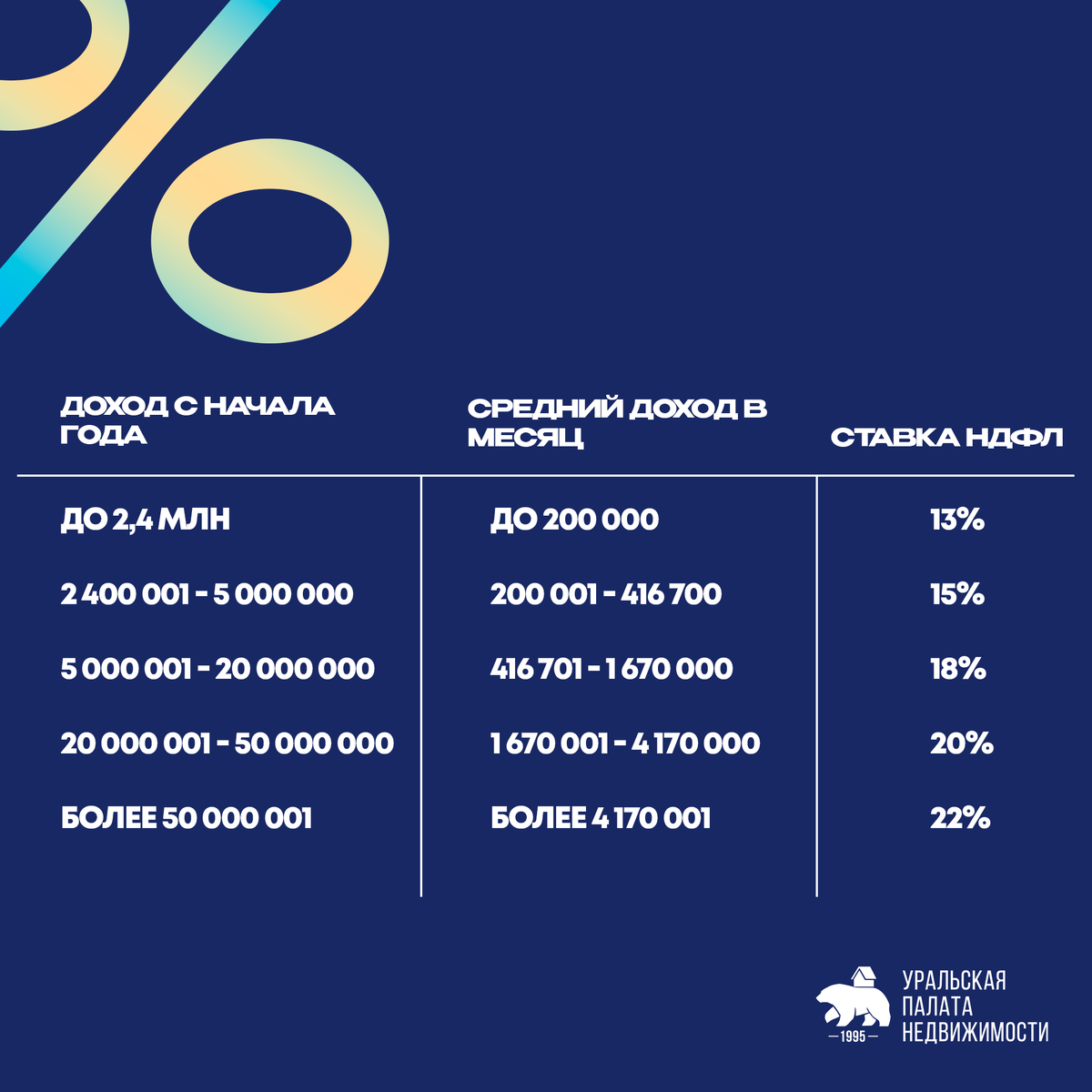 Начинает действовать прогрессивная шкала НДФЛ. Размер налога будет расти от величины дохода физлиц. Зарплата и вознаграждение по ГПХ будет облагаться налогом по пятиступенчатой шкале. Продажа недвижимости по двухступенчатой. В карточке показали их. Ставка НДФЛ при продаже жилья также будет зависеть от прибыли. А когда платить налог при продаже недвижимости не нужно? Чтобы продать жилье без налога, им нужно владеть не меньше 5 лет. Иногда он может быть сокращен до 3 лет. Также от уплаты налога освобождаются семьи с двумя и более детьми. Условия для этих случаев — в карточках. Налоговый вычет при продаже квартиры. Когда подтвердить расходы на покупку недвижимости не получается, можно использовать налоговый вычет. Его размер будет зависеть от типа объекта. 1 миллион рублей — размер вычета для жилой недвижимости: частный дом, квартира, комната, дача, садовый дом, земельный участок, или доля в одном из указанных типов. 250 тысяч рублей — размер вычета для иного имущества и нежилых помещений
