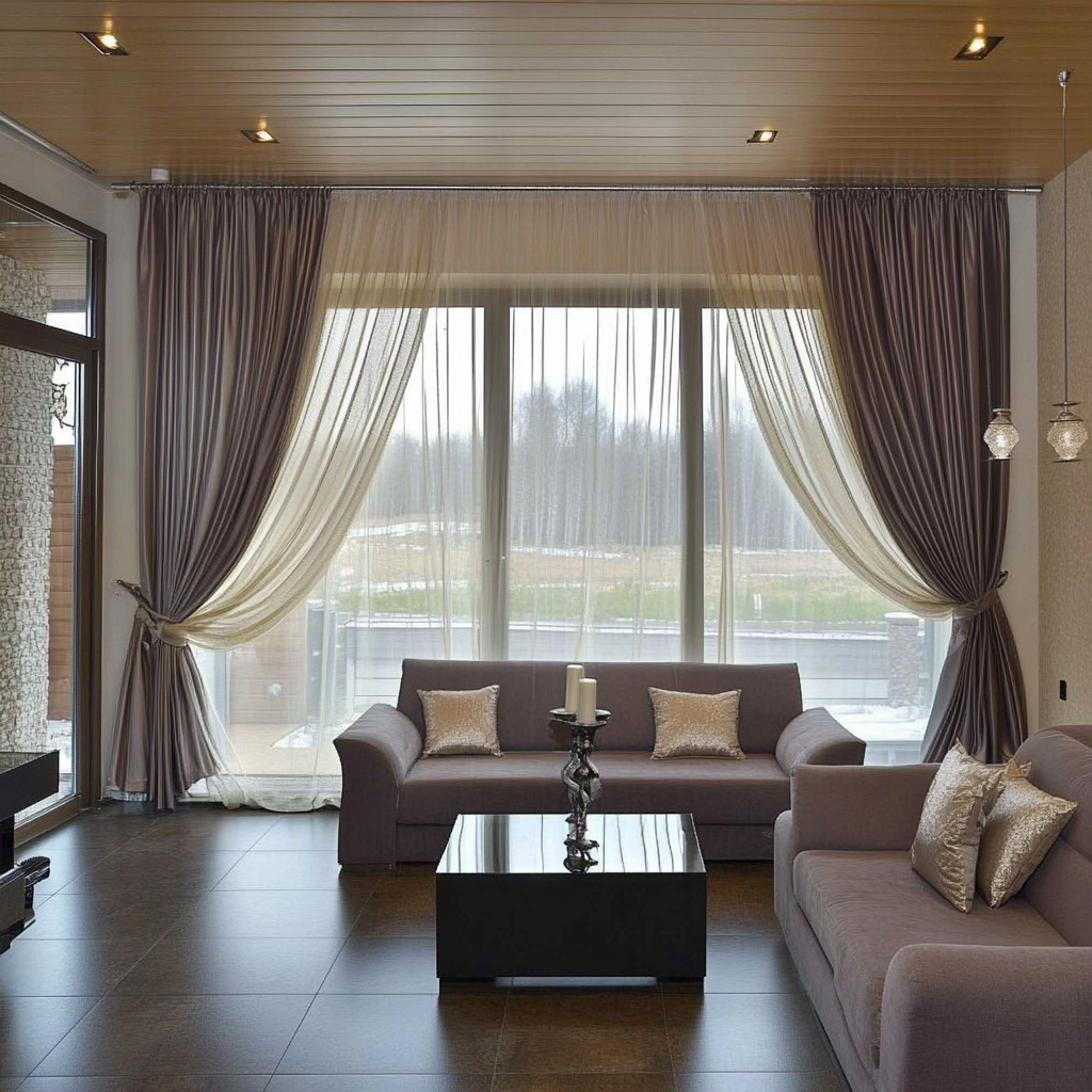 Совет: Сочетайте несколько типов ткани для многослойных композиций. Например, прозрачный тюль + плотные портьеры.