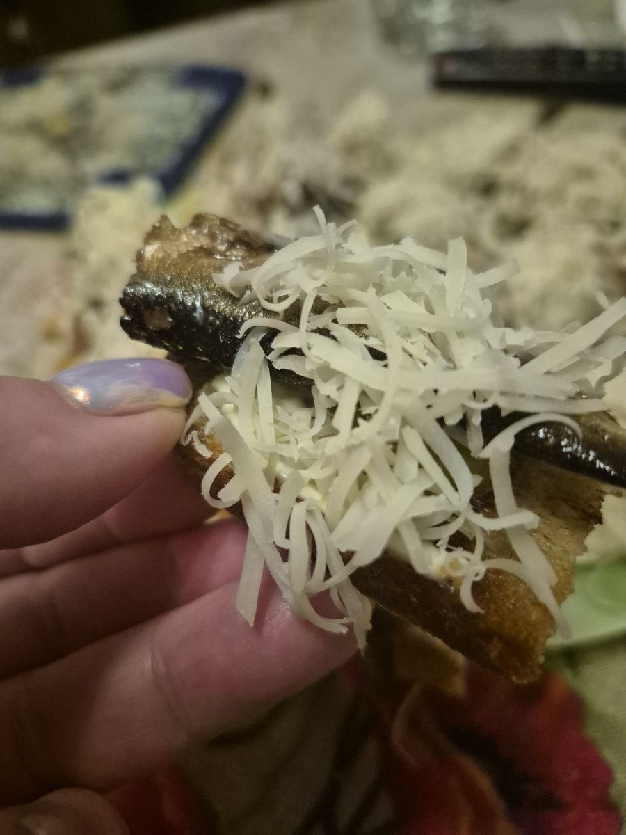 - масло для жарки Хлеб режем удобными кусочками и обжариваем на сковороде с растительным маслом со всех сторон. Маринованные огурцы режем кольцами, сыр натираем на мелкой терке, зубчик чеснока очищаем. Натираем каждый кусочек хлеба чесноком, сверху добавляем каплю майонеза и растираем его по всему кусочку хлеба. На каждый кусочек хлеба укладываем наши огурчики, затем шпротинку и сверху посыпаем сыром. Наши вкусненькие бутербродики готовы! Приятного аппетита!