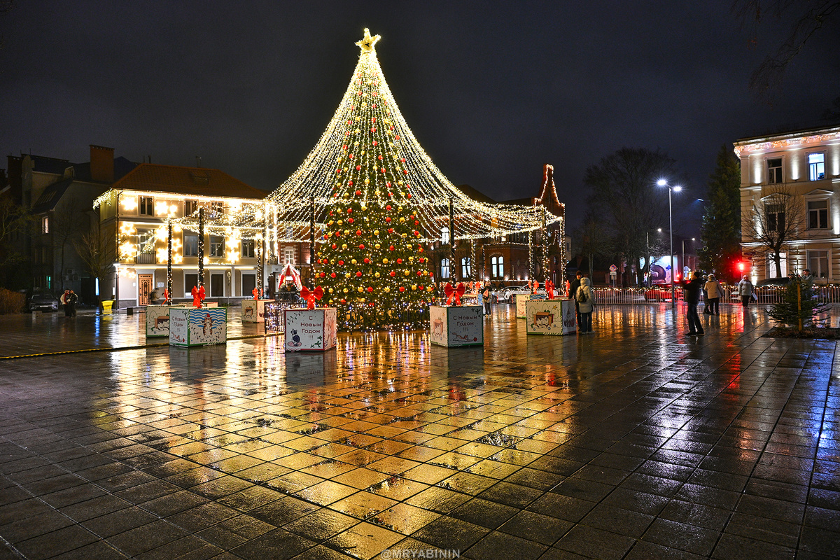 О праздновании Нового Года под главной елкой Зеленоградска сообщили даже в официальном паблике Калининградской области. Чувствую, Новый Год будет у нас многолюдным, учитывая количество приезжающих на новогодние каникулы туристов. Проведу вас по городу и покажу, как его украсили к Новому Году. Поехали посмотрим! Начну, естественно, с той самой городской новогодней елки в самом начале Курортного проспекта – всем известной пешеходной улицы Зеленоградска, соперничающей разве что только с променадом вдоль моря. Ну и может быть городским парком. В одну сторону от Центральной площади уходят ул. Ленина и ул. Тургенева, расходящиеся к вокзалу и к скверу Королевы Луизы, сбоку от площади начинается тихая Крымская улица с деревьями в стеклянных цветах, на аллее Дружбы традиционно раскинулась Рождественская ярмарка и конечно же начинается тот самый Курортный проспект – любимое место для прогулок не только туристов, но и горожан. Именно туда мы и отправляемся. Зеленоградск – самый нарядный и наверно