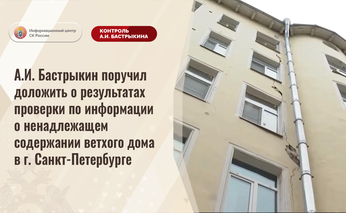 А.И. Бастрыкин поручил доложить о результатах проверки по информации о ненадлежащем содержании ветхого дома в г. Санкт-Петербурге