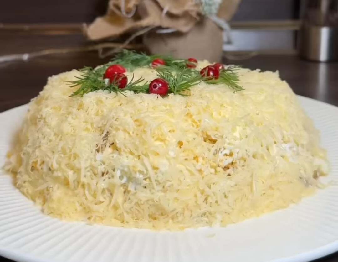 Ингредиенты: ✅ Копчёная куриная грудка или голень - 1-2 шт. ✅ Помидор (крупный) - 1 шт. ✅ Чеснок - 1-2 зубчика. ✅ Яйца - 2 шт. ✅ Сухарики (форма сухарей, как Хрус team) - 1 уп. ✅ Сыр. ✅ Майонез. ✅ Клюква - для украшения - по желанию. ✅ Веточка укропа - для украшения - по желанию. Нарезаем курицу кубиками и выкладываем на тарелку первым слоем. Смазываем тонким слоем майонезом (или сеточкой). Помидоры нарезам кубиками, сливаем лишний сок, перемешиваем с нарезанным чесноком и выкладываем слоем. Тонкий слой майонеза. Натираем яйцо на мелкой тёрке и выкладываем следующим слоем. Далее выкладываем сухарики. Натираем яйцо на мелкой тёрке и выкладываем. Тонкий слой майонеза. Сыр натираем на мелкой тёрке и выкладываем. По желанию украшаем. Рекомендации: Сразу после приготовления подаём к столу. Не оставляем салат настаиваться дольше 1 часа, иначе сухарики станут влажными и потеряют хруст. Подпишись на РЕЦЕПТЫ 🥗 Приятного аппетита 😋 #салаты #быстрыйсалат #рецептсалата #праздник