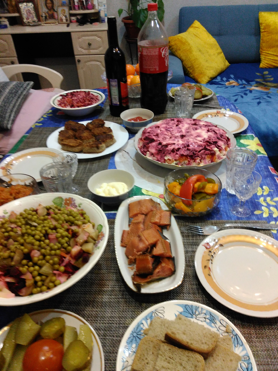 Все уже придумали,как будете встречать Новый год? Ну с ёлкой то понятно. Разобрались. У кого то живая ,у кого искусственная,у кого просто веточки. Главный атрибут предстоящего года -это ёлка. Теперь давайте подумаем ,как нам переместиться из старого года в новый.Как оставить всё плохое в прошлом? Как настроиться на всё хорошее. Правда ,запретили фейерверки и салюты по вполне понятным для россиян,причинам. Но хлопушку то можно хлопнуть под всеобщий восторг детей и взрослых. Правда же? Моя семья по обычаю садится за новогодний стол в 18.00 по московскому времени ,чтобы проводить Старый год. Ну вы сами понимаете,что к этому времени я должна буду всё успеть. Нарезать салаты (из 5 блюд) .Сварить мясо,запечь рыбу, и не забыть селёдочку под "шубой". Ну и как же без салата Оливье? конечно он будет! Каждый готовит его по своему,поэтому рецепт давать не буду,так как тема сегодня другая. Я уверена ,что все ждут бой курантов ,а затем самое главное -речь нашего Президента РФ. Эта речь опреде