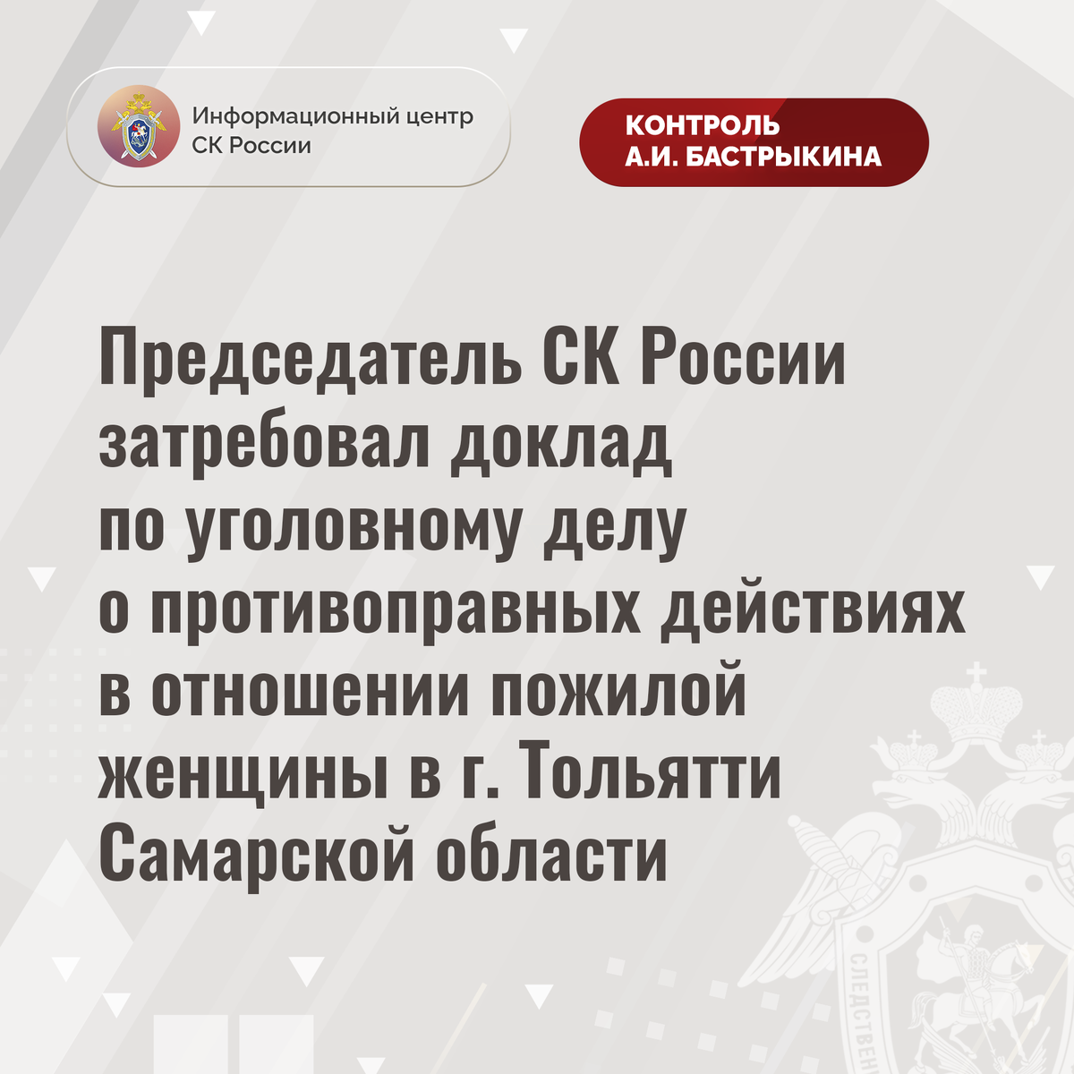 Председатель СК России затребовал доклад по уголовному делу о противоправных действиях в отношении пожилой женщины в г. Тольятти