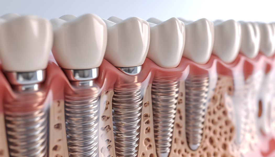 Зубной имплант — это искусственный корень зуба, который изготавливается из биосовместимого материала (чаще всего титана). Имплант вживляется в костную ткань челюсти, где со временем прочно срастается с костью в процессе остеоинтеграции. На имплант устанавливается абатмент (соединительная часть), а затем коронка — видимая часть зуба, которая выполняет эстетическую и жевательную функции. Импланты по своей конструкции и прочности рассчитаны на то, чтобы выдерживать нагрузки, аналогичные нагрузкам на естественные зубы. Но важно понимать, что успех использования имплантов зависит от множества факторов: качества установки, правильного ухода и соблюдения рекомендаций стоматолога. Да, но с оговорками. После вживления импланта требуется время для его приживления (остеоинтеграции). Этот процесс обычно занимает от 3 до 6 месяцев. В этот период нагрузка на имплант должна быть минимальной. Грызть орехи или жевать твёрдую пищу категорически запрещено, так как это может нарушить процесс приживления.