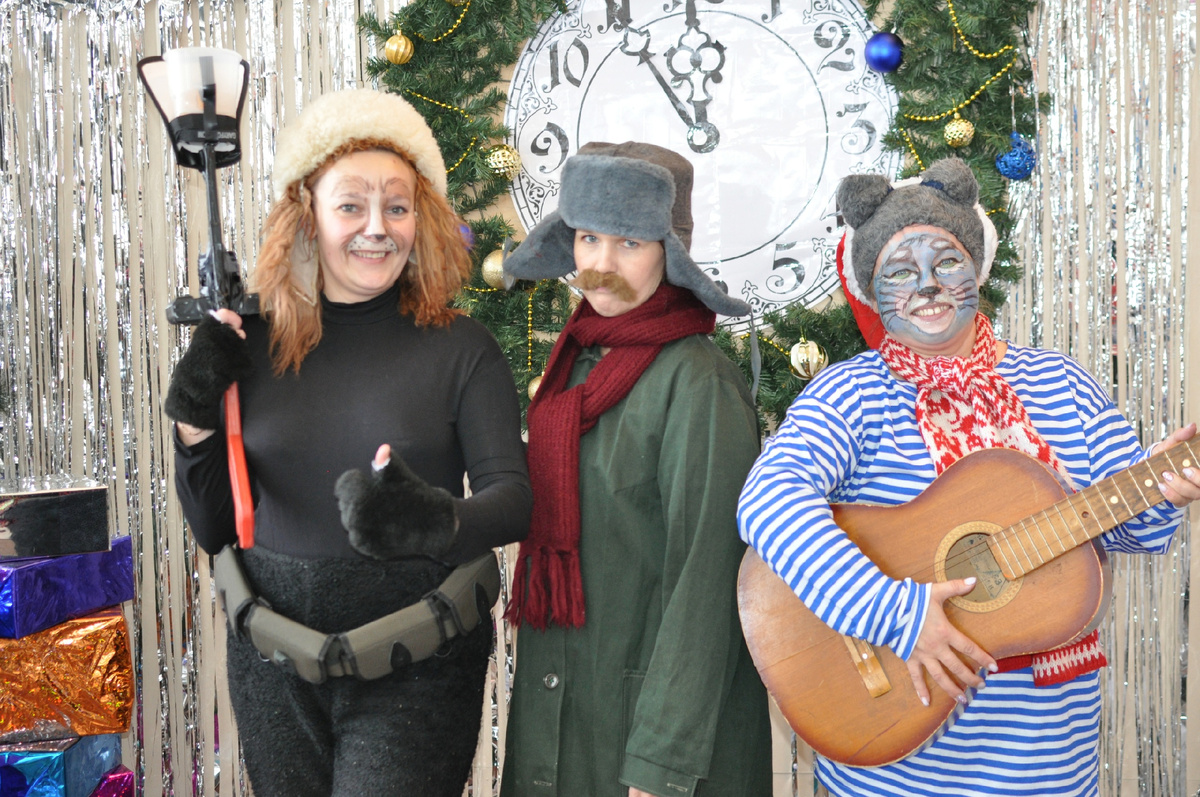 Когда-то на новогодних утренниках я играла Снегурочку. Потом мне стали давать роли Бабы Яги или Кикиморы. А теперь я скатилась до мужских ролей... Была я уже и Матроскиным и Разбойником. А что делать, если коллектив у нас женский, а мужские роли играть надо. Как видите, и Шарик, и Почтальон Печкин из нас неплохие получились. А сегодня на новогоднем утреннике для младших классов я играла Воеводу из сказки "По щучьему велению". Вы думаете, я расстроилась? Да ничего подобного! Оказывается, играть комедийных персонажей намного интересней, чем скучную Снегурочку или Снежную королеву. Правда в начале программы мне дали еще роль мамы Емели. Пришлось играть бабку. А Емелю сыграла моя сестра Светлана. А куда деваться?)) Знаете, какой девиз у большинства артистов? "Наш девиз - импровиз!" Это значит, что каждого героя мы под себя подстраиваем, сами придумываем ему характер, голос, движения. Вот и я подумала, какой может быть Воевода? И вспомнила известную присказку про подчиненных "Вид лихой и