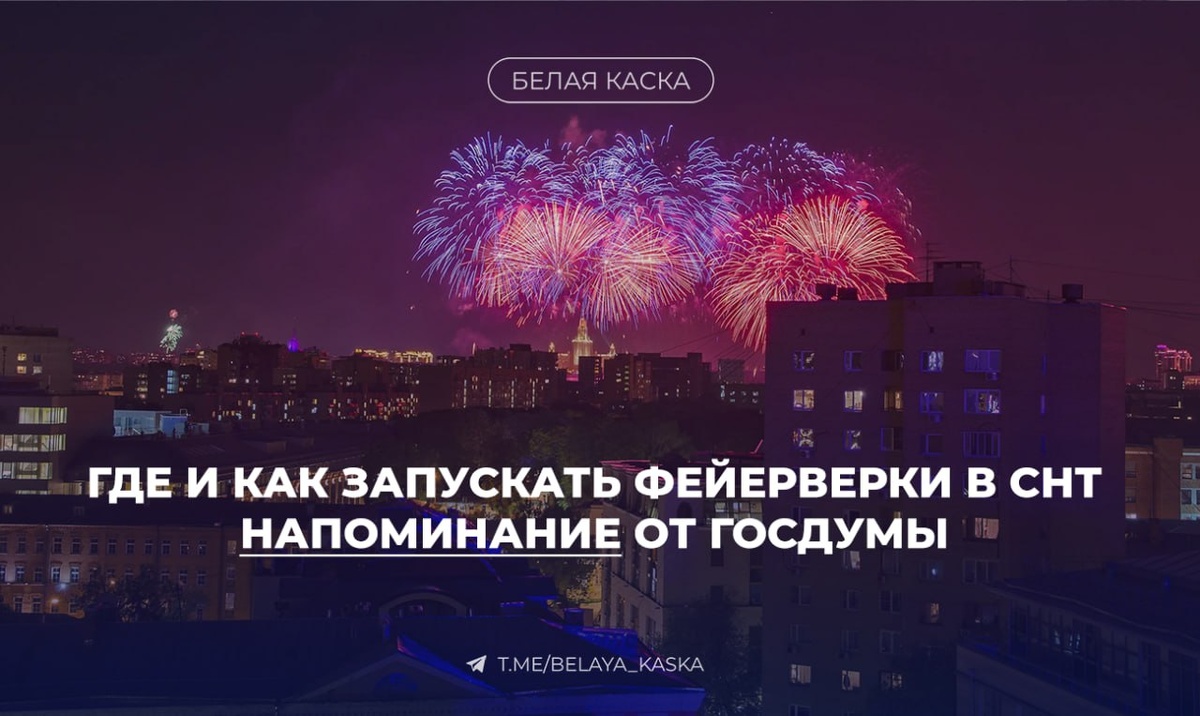 Владимир Кошелев, первый зампред комитета ГД по строительству и ЖКХ напомнил о правилах запуска фейерверков в СНТ. • Покупать фейерверки можно только в официальных магазинах. Торговля на улице, с лотков, автотранспорта или поштучно запрещена. • Нарушителей могут оштрафовать на сумму от 500 до 2000 рублей или привлечь по статье о незаконном предпринимательстве с штрафом до 300 тысяч рублей. "Рекомендуется в каждом СНТ или за его пределами определить специальное место для запуска фейерверков, которое соответствует нормативам - минимальное расстояние до леса и строений — от 10 до 150 метров в зависимости от мощности фейерверка.