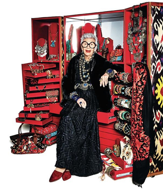 Айрис Апфель прожила долгую жизнь. Родилась она в 1921-м (мать ее, к слову сказать – эмигрантка из Российской Империи), умерла спустя ровно 102 с половиной года – в нынешнем 2024-м. Была дизайнером интерьеров, торговцем текстилем и антиквариатом, вместе с мужем руководила фирмой Old World Weavers («Ткачи Старого Света»), специализирующейся на реставрации и репродукции тканей. Была известна в профессиональных кругах, но настоящая всеамериканская, а потом и всемирная слава добралась к ней в 2005 году, когда Айрис исполнилось 84 года (так бывает!).
