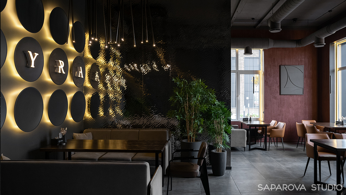 В сердце престижного квартала ЖК «Наследие» г.Астрахани открылось кафе EYRA. Этот оазис в густонаселенном квартале города приглашает гостей погрузиться в мир естественной красоты и современного дизайна. EYRA - место для тех, кто ценит гармонию и утонченность. Дизайнеры «SAPAROVA STUDIO» вложили в интерьер философию баланса и изысканности через современный минимализм и элегантные детали. На создание интерьера EYRA дизайнеров вдохновила концепция и ценности, заложенные в самом названии кафе: утонченность, равновесие Инь и Ян, безмятежность и особенная атмосфера. Это история о поиске баланса в современных городских джунглях. EYRA не просто кафе, а настоящее произведение искусства, интегрированное в пульсирующий ритм города. Жизнь среди камня Природа - то, что было и останется после нас. Дизайнеры «SAPAROVA STUDIO» виртуозно объединили модные тренды и натуральные материалы, которые погружают посетителя в фантастический мир. Это ощущение усиливает уникальный декор стен — арт-объект, выпол
