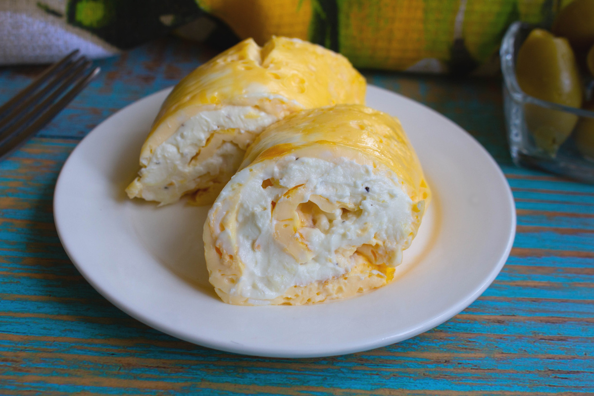 Когда надоели привычные завтраки из яиц, то всегда можно найти какой-то новый и интересный рецепт из куриных яиц. Такой рулет будет более сытный, чем классическая яичница. Начинку можно каждый раз делать разную и найти тот вкус, который устроит вас. В этом варианте начинки есть чеснок, если вы готовите рулет на перекус, то чеснок можно оставить, в рулете для завтрака чеснок исключаем. Рулет получается мягкий, пышненький, яркий и вкусный. Яйцо куриное - 2 шт. Молоко - 60 мл. Сыр сливочный - 80 г. Сметана - 1 ч.л. Чеснок - 1 зуб. Соль, черный перец - по щепотке Масло растительное - 0.5 ч.л. Яйца вбиваем в чашку, вливаем молоко. Добавляем соль и перемешиваем. Для начинки, смешиваем сливочный сыр, сметану, соль и черный перец. Продавим через пресс чеснок в начинку и перемешиваем. Из яичной массы готовим простой блин. На сковороде разогреваем масло, выливаем яичную массу и готовим блин с одной стороны, на небольшом огне, под крышкой. Затем блин выкладываем и даем ему остыть. Распределяем по