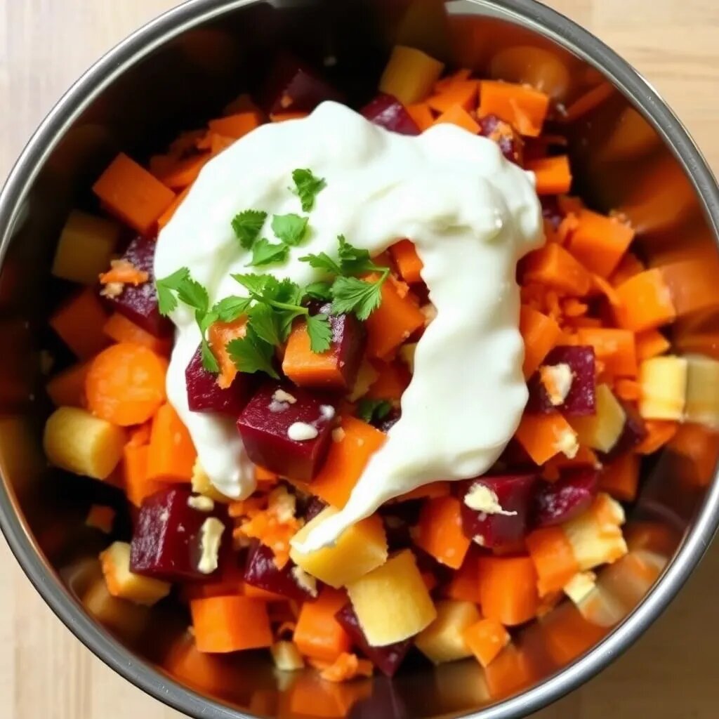 Советы по подаче: Украсить салат зеленью или семечками. Секреты приготовления: Чтобы свекла не окрашивала другие ингредиенты, добавьте немного лимонного сока. Как вам рецепт? Напишите в комментариях, как вам понравился этот салат! Есть ли у вас свои секреты приготовления свекольных блюд? ___________________ 😊Подписывайтесь на наш канал и делитесь своими любимыми новогодними салатами в комментариях!