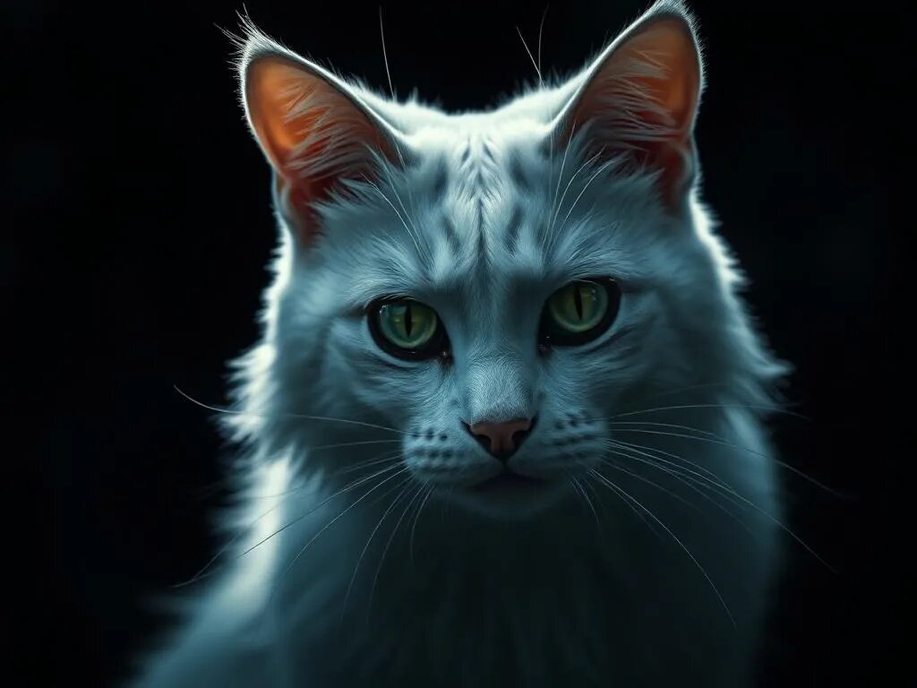 В глухой деревне, затерянной среди тёмных лесов, существовала старая заброшенная усадьба, о которой ходили жуткие слухи. Говорили, что в ней живет кошка с белоснежной шерстью и зеленящими глазами, которые светятся в темноте. Местные жители называли её «Душегубка» — из-за скверной судьбы всех, кто осмеливался войти в эту усадьбу. Однажды бравый молодой парень по имени Марк, полный решимости и незнания о местных поверьях, вошёл в усадьбу, намереваясь узнать, действительно ли там живёт эта зловещая кошка. Он взял с собой фонарик и смелость, но вскоре осознал, что мир здесь совсем иной: тени казались живыми, а шёпоты раздавались из каждой щели. Когда Марк забрёл в глубокие недра усадьбы, он заметил, что стены покрыты странными знаками, словно здесь обитали духи. Вдруг он услышал тихое мяуканье. Прислушавшись, он увидел, как белая кошка появилась из тьмы, её глаза светились как изумруды. Сразу же парень ощутил ледяной холод, пробирающийся по его телу, и перед ним стали возникать ужасающие в
