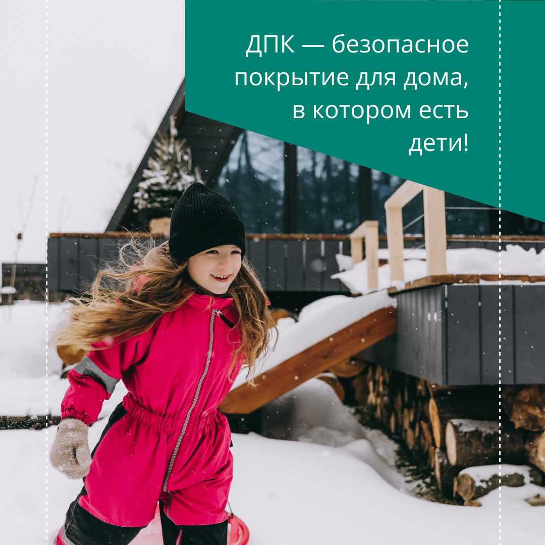 Выбор напольного покрытия для семей особенно важен. Даже самые внимательные родители могут пропустить одну из шалостей. Например, пролитый сок, в котором можно испачкаться и на котором можно поскользнуться. Чтобы каждый день был комфортным и приносил меньше тревог, выбирайте покрытие для террасы или дома из древесно-полимерного композита: – ДПК устойчив к царапинам, ударам и другим механическим повреждениям. Ничего страшного не произойдет, если на доски уронят тяжелый предмет. – Этот материал не боится влаги и легко моется. – ДПК не скользит, даже если он мокрый, что снижает риск падений и травм. – Хотя ДПК является синтетическим материалом, он не выделяет вредных веществ в окружающую среду. Декинг — это отличный выбор для дома, где есть дети. Он сочетает в себе прочность, долговечность, безопасность и эстетичность, что делает его одним из лучших вариантов для покрытия террасы.