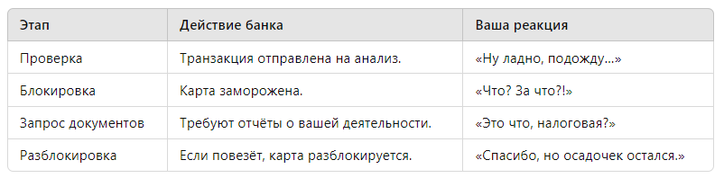 В зале полумрак. На стене мерцает экран. Это не трейлер к новому артхаусному фильму, это ваша жизнь, где главная роль отведена... банковской карте. Звук смс, как выстрел в пустоте: «Карта заблокирована по 161-ФЗ». Федеральный закон 161 — он как режиссёр артхаусной драмы: его мотивы загадочны, а действия вызывают больше вопросов, чем ответов. Этот закон был создан, чтобы бороться с отмыванием денег и финансированием терроризма. Но почему-то его действия распространяются и на того, кто просто перевёл деньги бабушке за соленья. Вы идёте в магазин, чтобы купить хлеб и молоко. Протягиваете карту, кассир смотрит на вас с подозрением. Транзакция не проходит. «Ваш баланс равен нулю», — шепчет терминал, будто злой антагонист в кино. И вот вы стоите, окружённый толпой, словно персонаж нуара, которого обвиняют в преступлении, которого он не совершал. Банки — те ещё параноики. Вот ТОП-5 причин, почему ваш счёт заморожен: Банковская система — это театр абсурда. Вот как выглядит процесс б