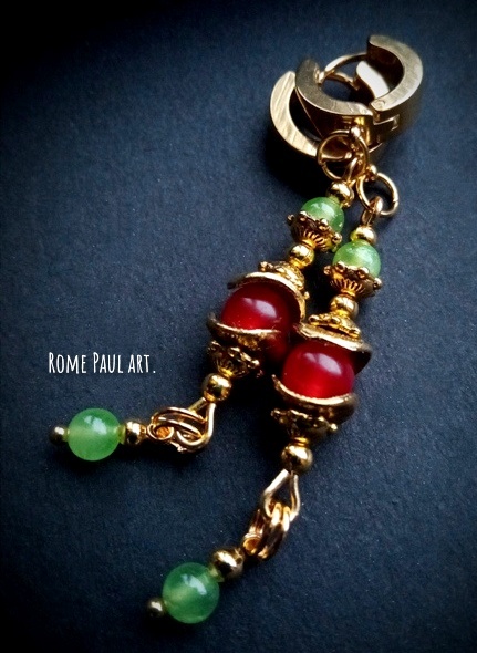 Материалы: природный красный кварц (8 мм, Бразилия), натуральный зелёный оникс (4 мм, Алжир), позолоченная фурнитура, швенза-конго (ювелирная сталь) Длина серьги: 65 мм Считается, что красный кварц обладает сильными энергетическими данными: очищение воды от негатива и насыщение её полезными компонентами, привлечение материального благосостояния, помощь в познании истины, повышение жизненных сил и оптимизма, гармония в семейных отношениях, устранение грусти, печали, хандры, разочарования, успокоение и создание внутреннего равновесия, помощь в выходе из депрессии, преодолении стрессов, страхов и тревоги, защита от колдовского воздействия. ...Серьги с зелёным ониксом будут охранять своего владельца от любых невзгод и способствовать накоплению жизненной энергии, приводит к финансовому благополучию, поддерживает ясность мыслей, избавляет от тревог и навязчивых страхов, прогоняет кошмары. В наличии один авторский экземпляр. ЦЕНА ИЗДЕЛИЯ 2600 руб. +Доставка по РФ 1 классом Почтой России