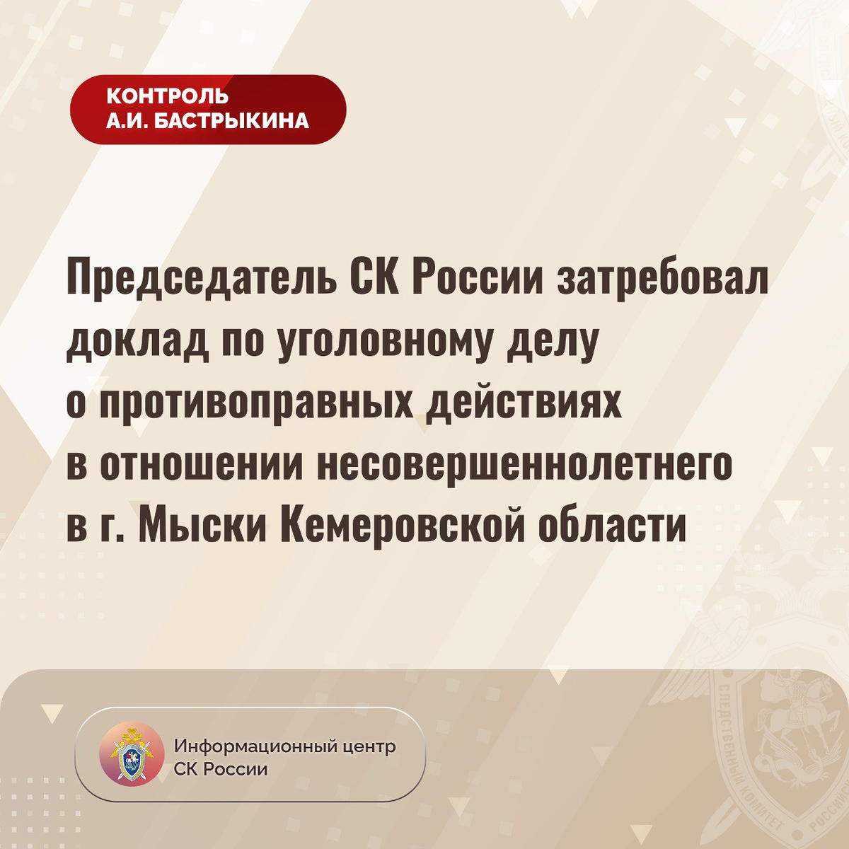 Председатель СК России затребовал доклад по уголовному делу о противоправных действиях в отношении несовершеннолетнего в г. Мыски