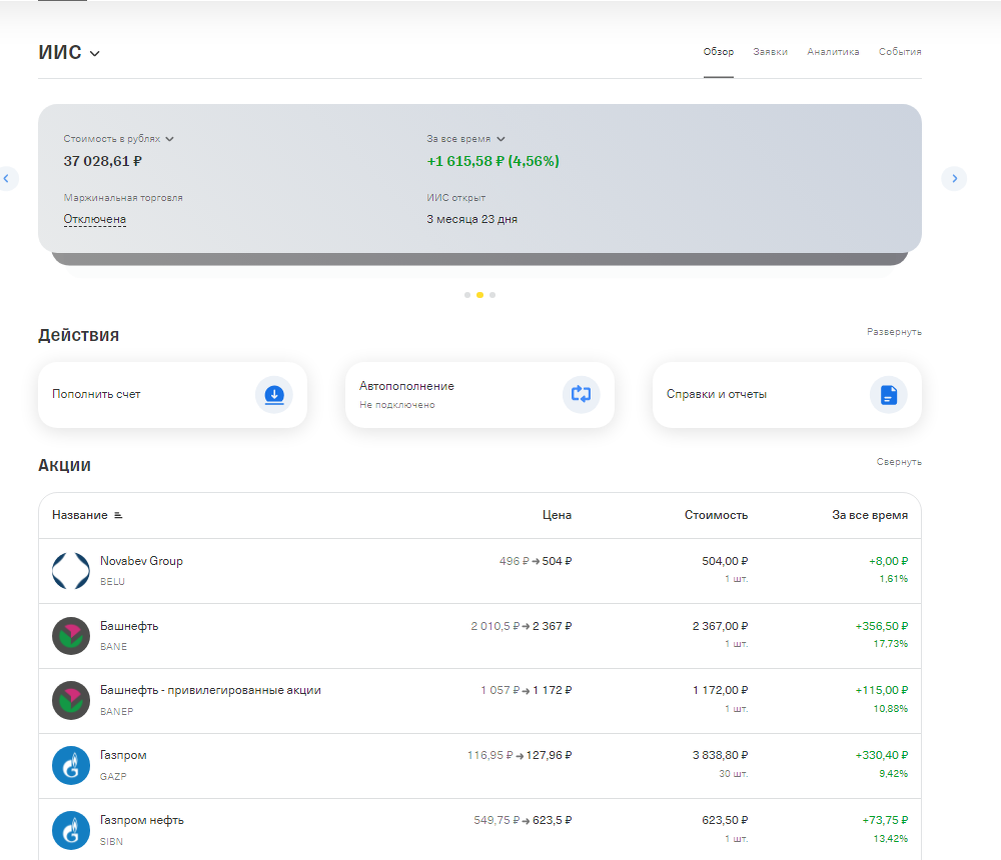 Главное, конечно, ЦБ не по плану. И курс ММВБ. Который должен был встать в 2200 чтобы я закупился. А он за 2700 выбрался. Впрочем - шальные деньги перед новым годом у меня появились, хотя и не так много как я бы хотел. Поэтому мой портфель на конец 2024 выглядит так: Как можно заметить, список весьма расширился. По количеству. И в основном весь зеленый. Ну и то, что я внес по моим расчетам 35 тысяч, а сейчас там 37 тоже радует. За три то месяца. Хотя сам счет показывает +1615, но может он дивиденты не считает или еще чего, лень разбираться честно говоря. Суть в том что в целом - недурно. Жаль что не дожал до 50 и не закупился до того, как ключевую ставку оставили как есть и ММВБ рванула верх. Впрочем на 10 то из 20 закупился. Насчет особенностей портфеля я на днях напишу еще. В смысле как формировал и какой логикой руководствовался. Пока вроде все сыграло более-менее. Ну лучше чем могло бы быть. Опять же, налоговый вычет же еще будет. В общем пока план - сделать на этом счете к