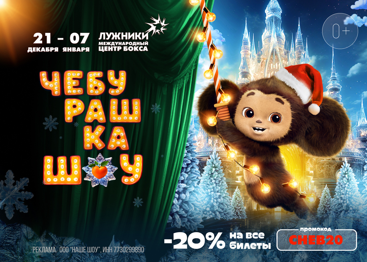 Любимейший советский герой Чебурашка вернулся. Но вернулся уже "обновленный" и по мне так ещё милее :). Новый Чебурашка стал снова любимой игрушкой теперь уже наших детей. Покупайте билеты уже сейчас по ссылке 👉https://mskshow.prfl.me/promozon_ru/cb6khf?erid=2Vtzqve6XFg со скидкой 20% по промокоду ✨ CHEB20 ✨ пока билеты не раскупили. Такое пропускать нельзя!