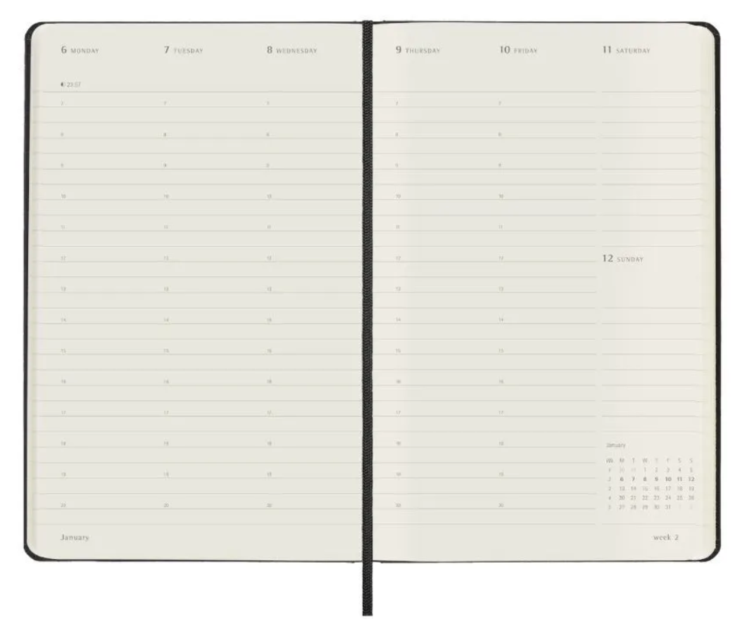 Наступает окончание года, время готовить подарки, подводить итоги и строить новые планы на будущее. В решении этих задач неоценимую роль играет ежедневник, а точнее, еженедельник! Этот вопрос возникает традиционно в конце года и потому я уже писал об этом в прошлых выпусках, описывал собственный опыт использования того или иного формата, а потому хочу описать свои сомнения на счет выбора еженедельника на 2025 год. Мой выбор ежедневника в прошлом 2003-м году был однозначно еженедельник "Молескин XL Pro". Версия XL дает возможность рисовать схемы, записывать идеи, дополнять концепции во времени. А три буквы "Pro" говорят о том, что между недельными разворотами есть разворот, где можно фиксировать что-то важное, но не привязанное во времени. Это не только важные задачи, но и место для рефлексии или разбора полетов. Пока я не выпустил свою версию "Бортового журнала", то пользуюсь этими самыми разворотами. Пожалуй это самый лучший олдскульный инструмент управления временем. Но опыт этого го
