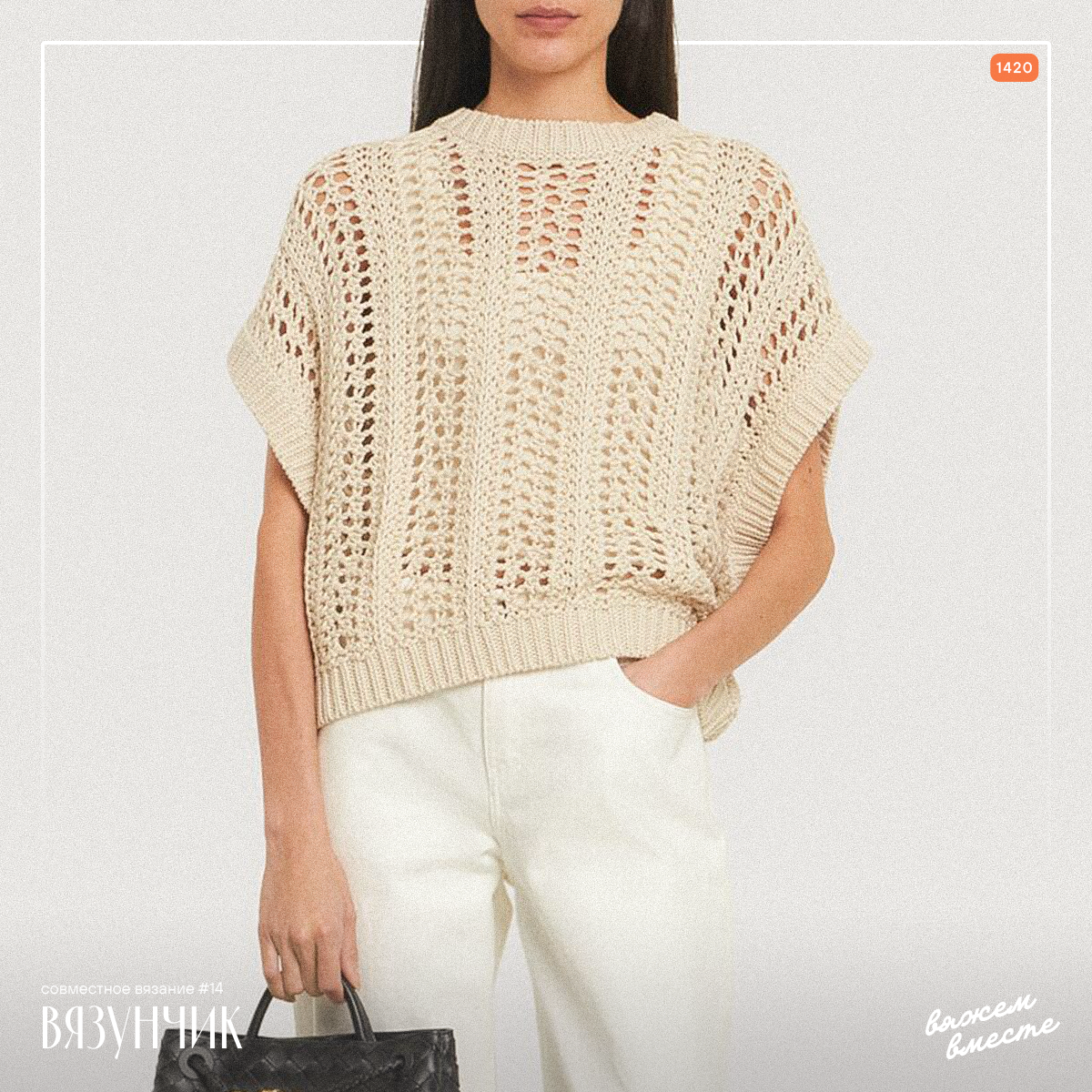 В коллекции 2025 года от Брунелло Кучинелли есть модель, которая мне очень понравилась своей лаконичностью, универсальностью, необычным ритмом узора, поэтому мне впервые захотелось связать безрукавку. У меня было 300 г пряжи, и я решила, что это знак. Получился в некотором роде челлендж, т.к. пряжи едва хватило. Но все вышло отлично, связала за 2 дня, а потом поняла, что это отличная модель для новичков или для тех, кто любит простые в исполнении вещи.