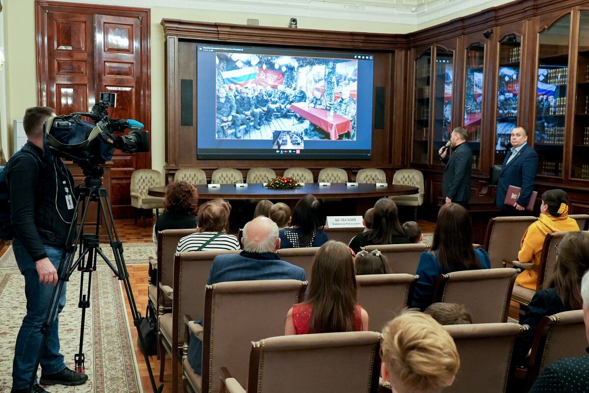 В Мариинском дворце прошёл новогодний телемост, организованный для бойцов Ленинградского полка и их близких. В мероприятии приняли участие председатель Законодательного Собрания Санкт-Петербурга Александр Бельский и депутаты фракции «Единой России» Александр Ржаненков, Юрий Гладунов, Константин Чебыкин, Анастасия Мельникова и Александр Малькевич. Командир полка Михаил Коган поблагодарил петербуржцев и парламентариев за неоценимую помощь, которая ощущается особенно остро на передовой. С начала специальной военной операции при участии Законодательного Собрания в зону СВО и новые российские регионы отправлено более 50 гуманитарных конвоев. Общий объём помощи превышает тысячу тонн и включает предметы первой необходимости, автомобили, спецтехнику и средства радиоэлектронной борьбы.